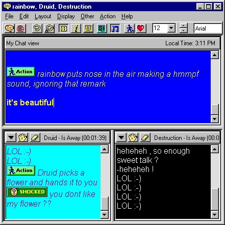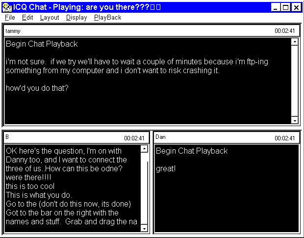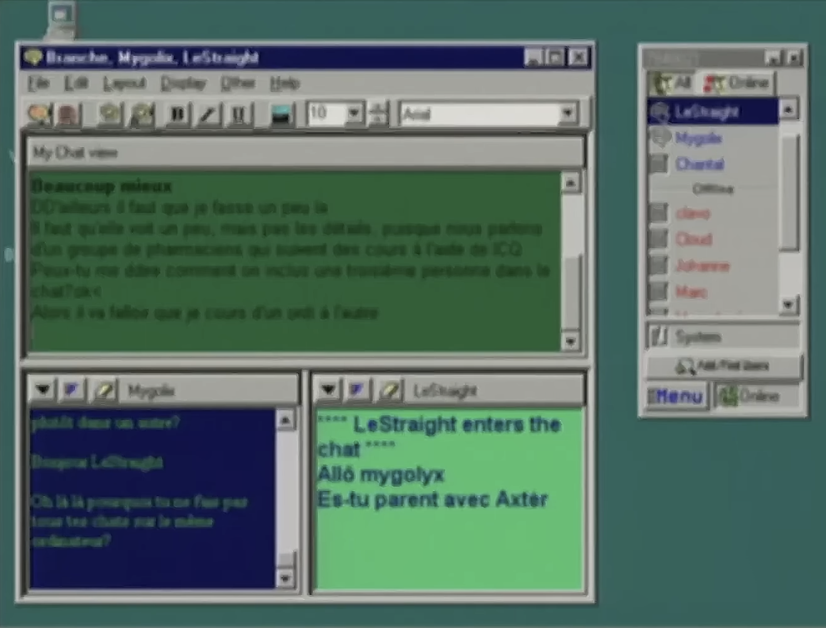 - ICQ had a “Chat” mode distinct from regular messaging: a split-screen window where each participant’s text appeared as real-time text.