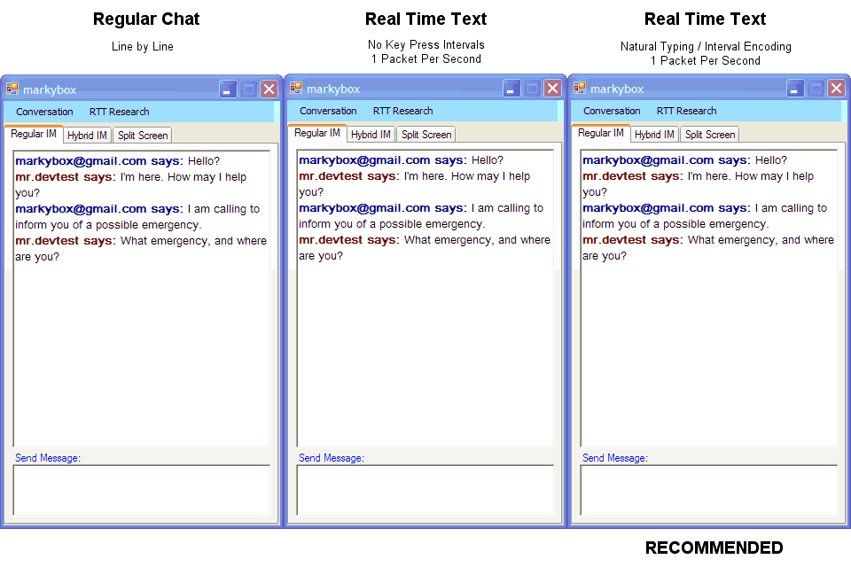 - Uses RFC 4103 over IMS. Intended as an accessibility feature to replace legacy TTY/TDD.